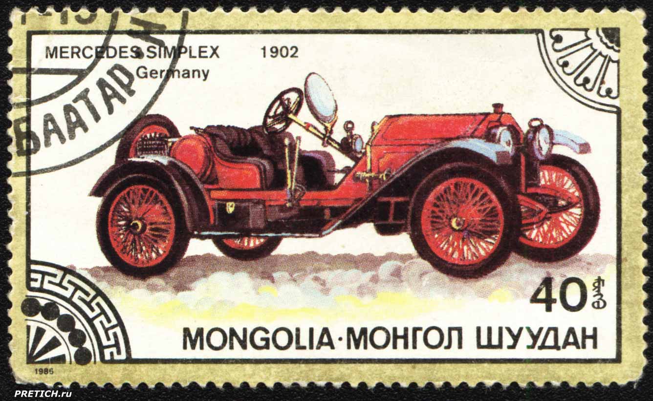Почтовая марка Монголии: Mersedes Simplex 1902 Germany. 1985. Mongolia - Монгол Шуудан