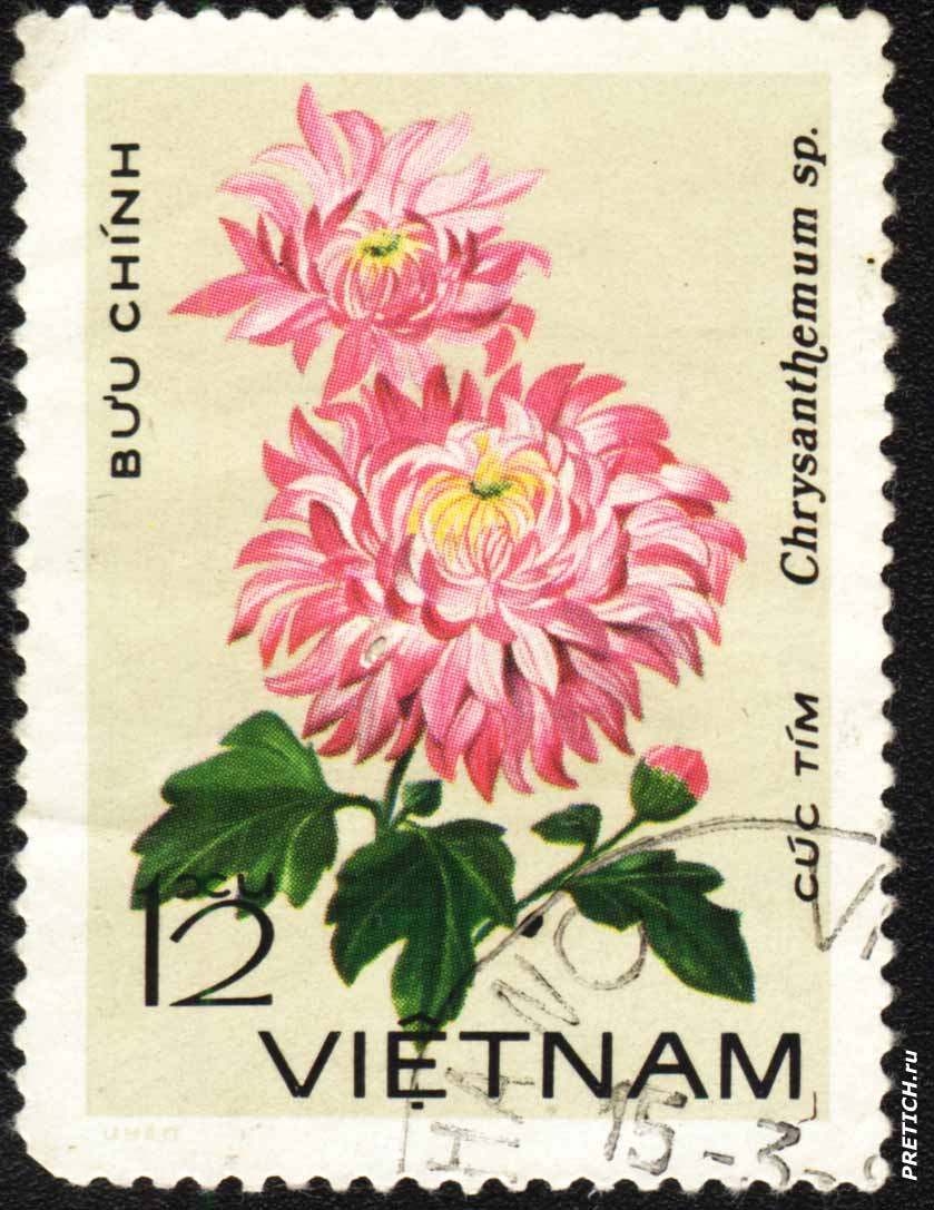 Почтовая марка Вьетнама: Chrysanthemum sp. Viet Nam