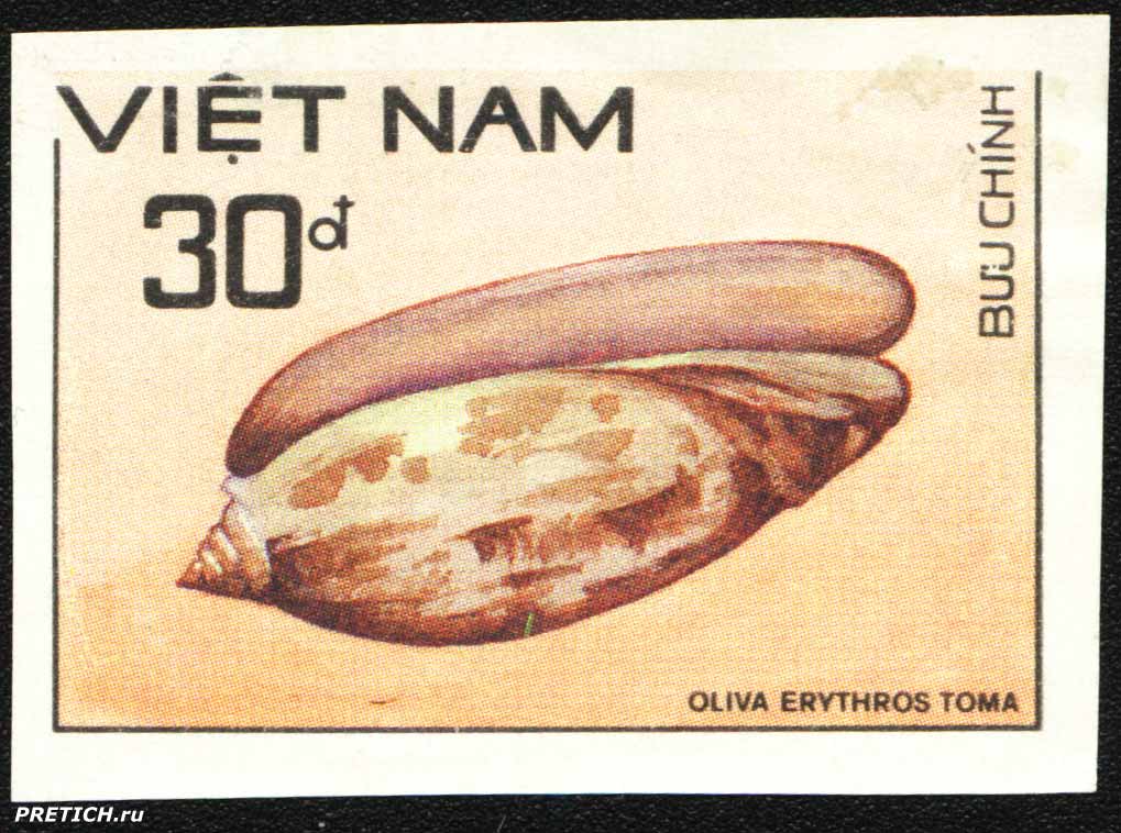 Почтовая марка Вьетнама: Oliva erythros Toma. Viet Nam. Беззубцовая марка.