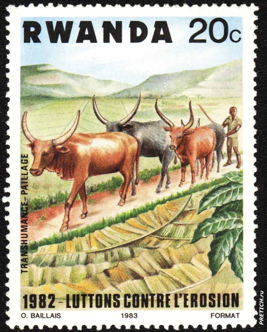 Почтовая марка Руанда: Transhumance - paillage. 1982 - Luttons Contre L'Erosion. O. Baillais. 1983. Format. Rwanda