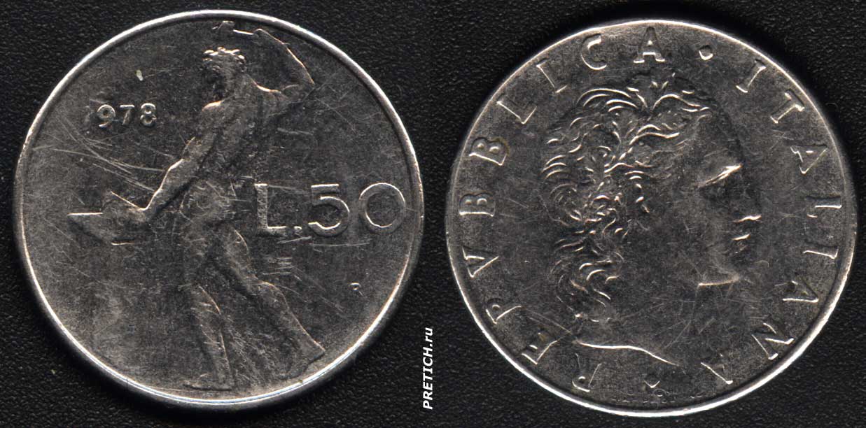 L.50 1978 Republica Italiana - итальянская монета 1978 года достоинством 50 лир, материал - сталь.