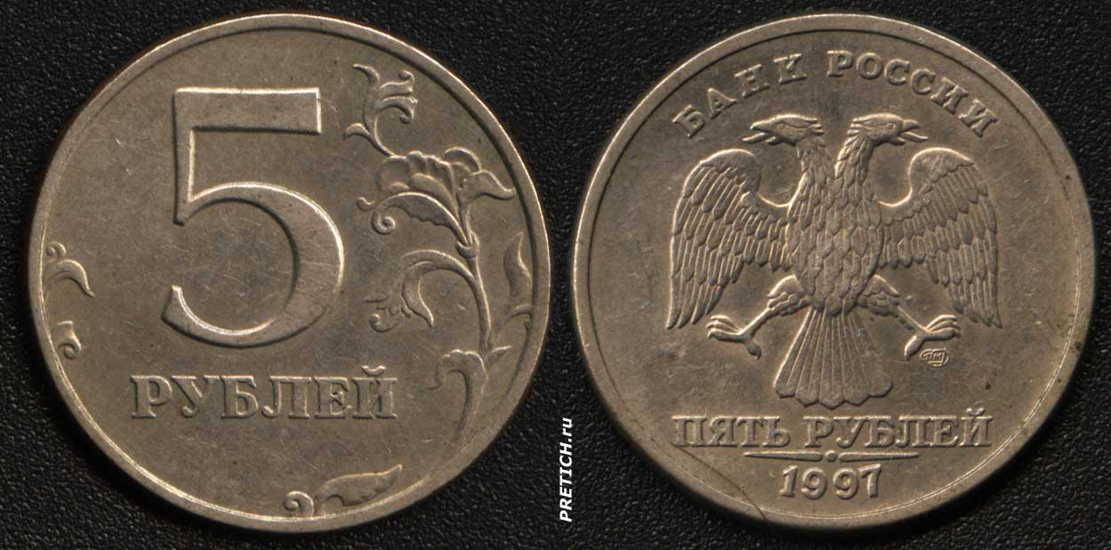 5 рублей - Пять рублей. Банк России. 1997 - металлическая монета.