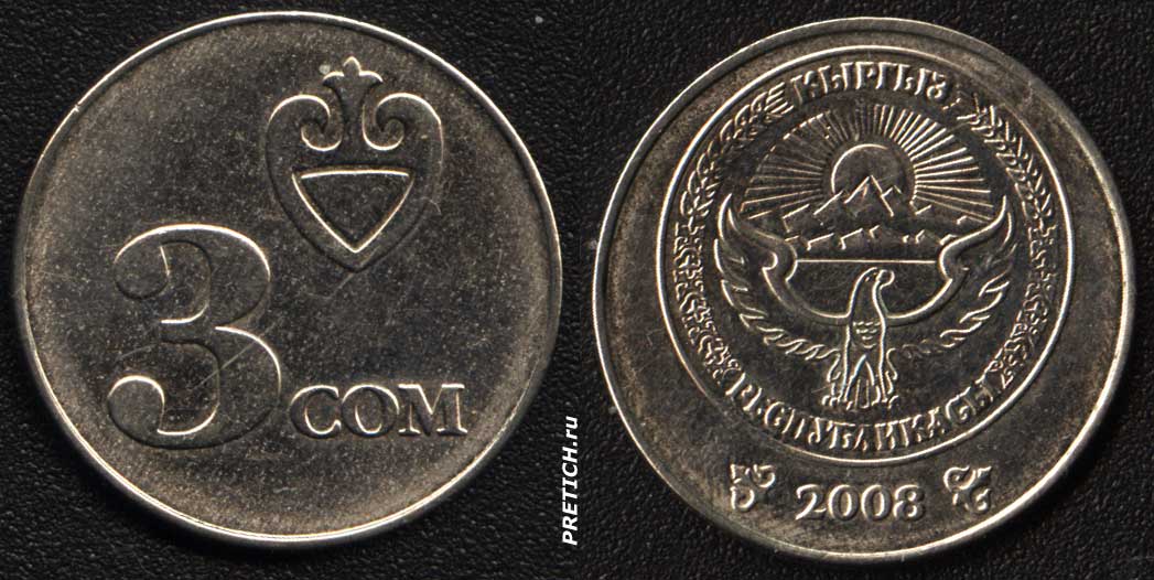 3 сом, 2008, Кыргыз Республикасы - монета в три сома, Киргизия.