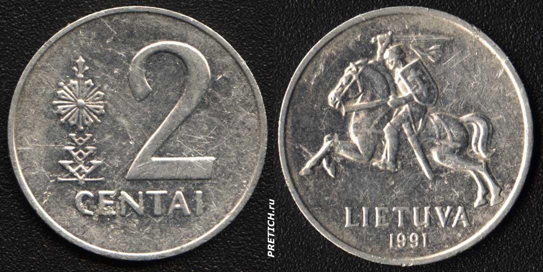 2 centai. Lietuva 1991 - два цента Литвы, 1991 года. Материал - алюминий.