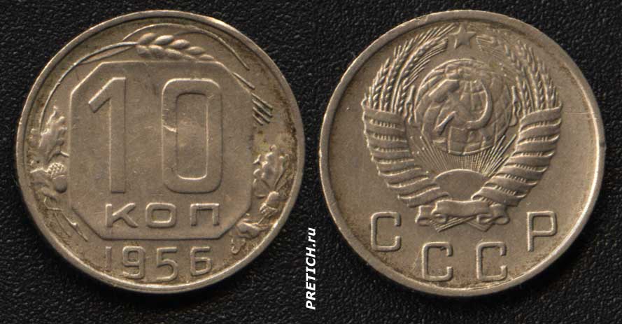 10 коп - копеек. 1956. СССР. Монета, медно-никелевый сплав.