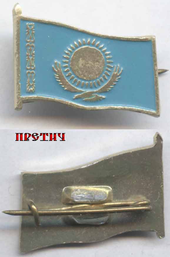 Значок - флаг Казахстана. На значке изображен ныне действующий флаг республики Казахстан, принятый в 1992 году.