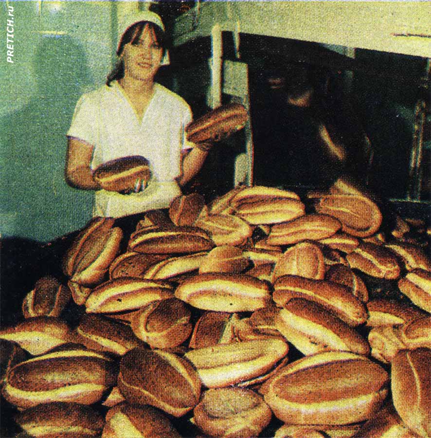 До чего же хороши румяные батоны, только что испеченные сосновоборскими хлебопеками! СССР. Начала 1980-х годов.