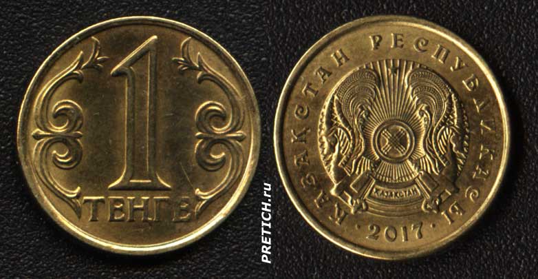 1 тенге. 2017. Республика Казахстан. Выпуск с 2016 по наше время. Материал - сталь с латунным покрытием.