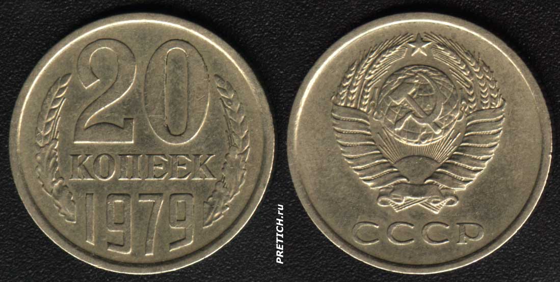 20 копеек. 1979. СССР - регулярно выпускавшаяся монета в Советском Союзе с 1961 по 1991 год. Материал - Медь-Цинк-Никель.