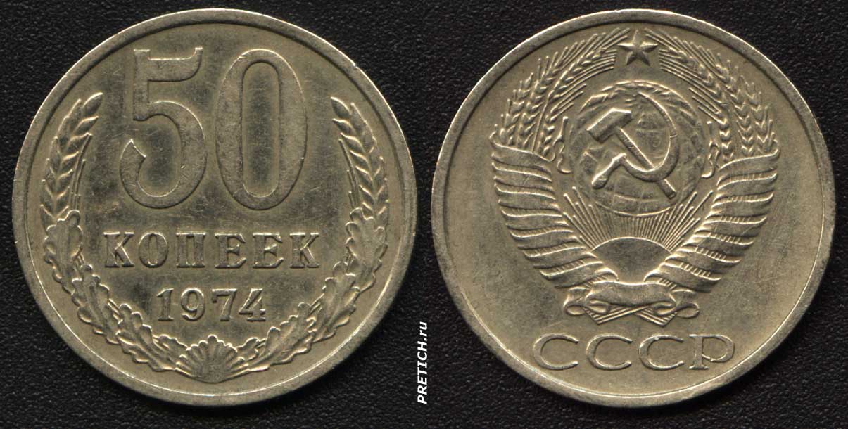 50 копеек. 1974. СССР - регулярно выпускавшаяся монета в Советском Союзе с 1961 по 1991 год. Материал - Медь-Цинк-Никель.
