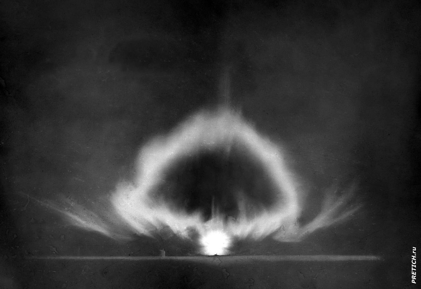 Фотография с длительной выдержкой взрыва Тринити после детонации 16 июля 1945 года (министерство обороны США)