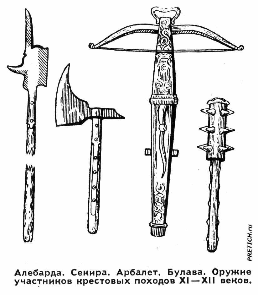 Алебарда, секира, арбалет, булава - оружие участников крестовых походов XI-XII веков.
