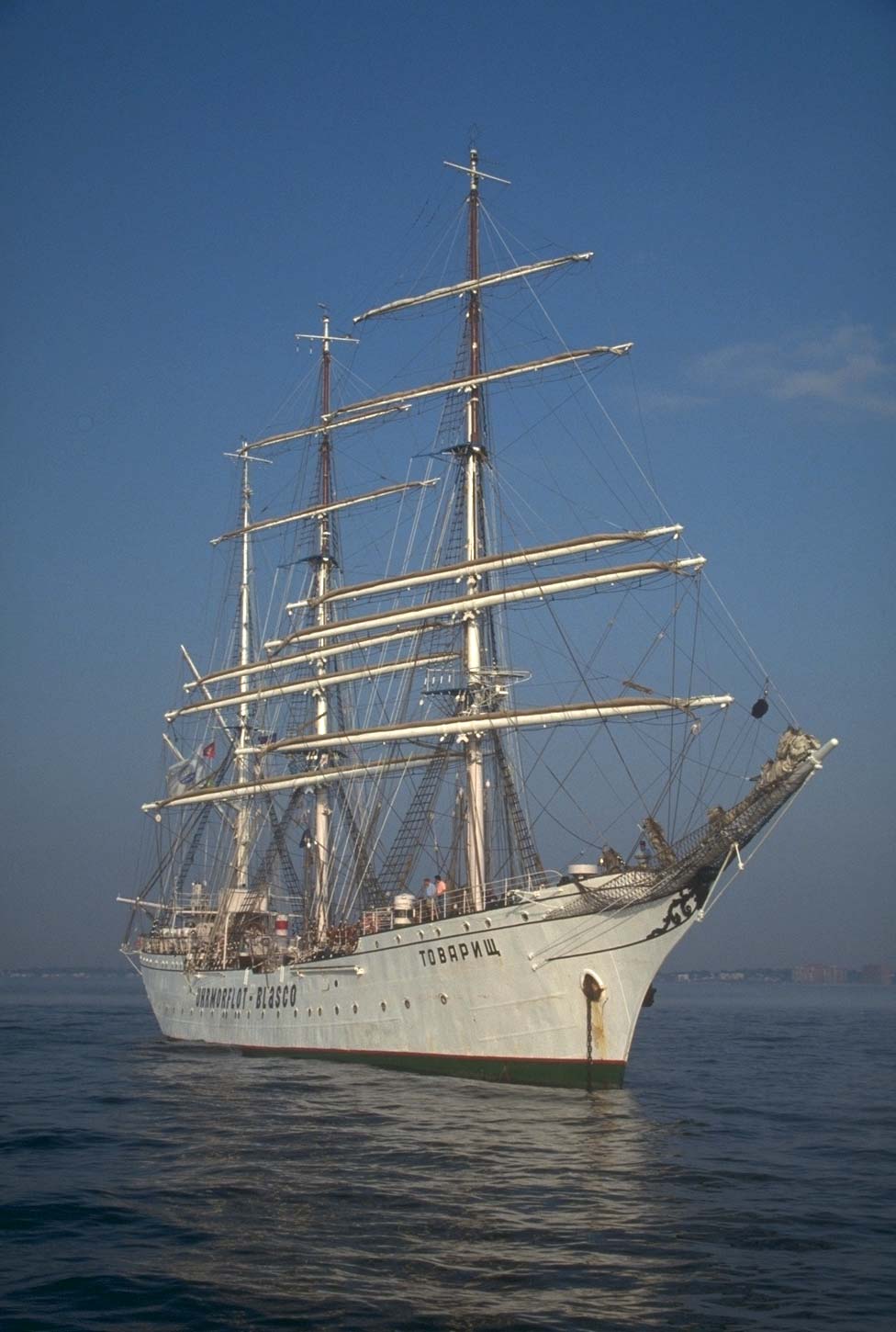 "Товарищ" - трехмачтовый барк СССР, не путать с советским четырехмачтовым барком "Товарищ", погибшем в 1943 году. После распада СССР достался Украине, которая оказалась неспособной содержать это судно... в начале 2000 годов он был продан немцам.