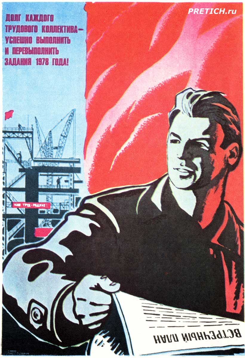 Долг каждого трудового коллектива - успешно выполнить и перевыполнить задания 1978 года! Плакат, СССР, 1978 год.