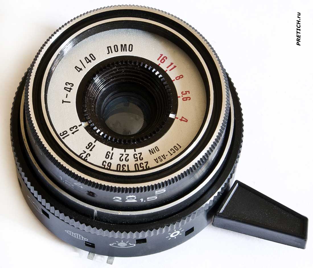В фотоаппарате Смена-Символ использован тот же объектив, что и в Смене-8М, называется он Т-43 4/40 ЛОМО. Отличия только декоративные, ну и конечно иной спусковой механизм... В этой части статьи мы рассмотрим этот объектив и разберем его полностью.
